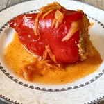 Бланшировать перец. Отварить до полуготовности рис. Пока перец и рис остывают, делаем начинку для перца.