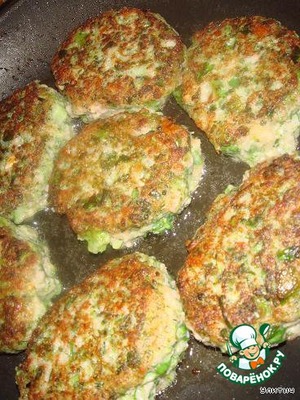 Через 30 минут достаем фарш из холодильника, формуем котлеты и обжариваем с двух сторон. Можно ложкой выкладывать на сковороду, можно формовать руками, смоченными в воде.