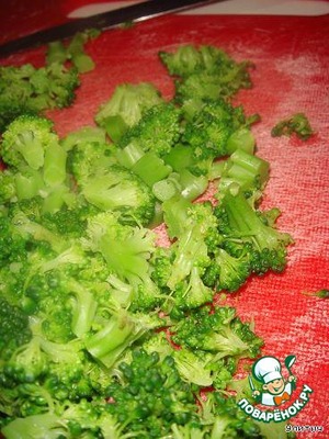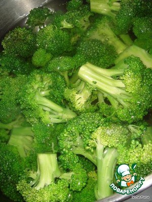 Брокколи разобрать на соцветия. Помыть. Опустить в кастрюлю с кипящей водой и проварить 2 минуты, не больше.