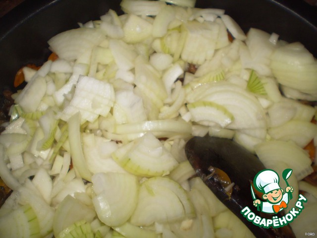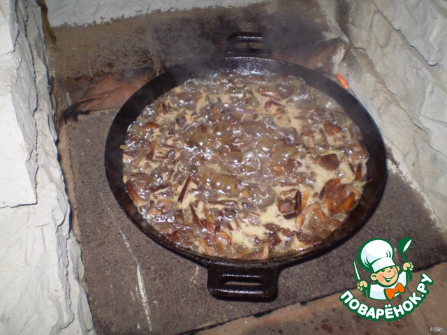 Почищенные грибы поставить тушится с добавлением масла. Протушить грибы примерно минут 20.