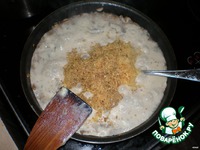 снять грибы в сливках с огня, приправить солью, перцем, добавить брокколи |