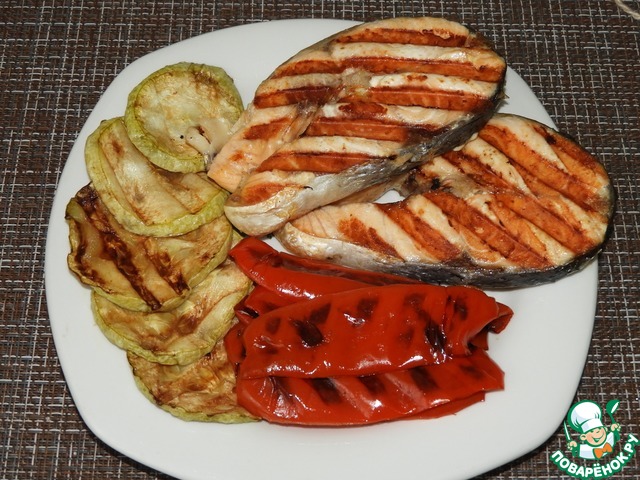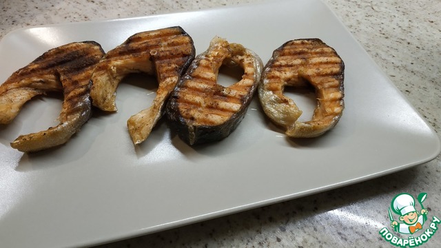 3. Разогреем гриль 240 градусов, стейки посолим и запекаем на гриле 10 мин.