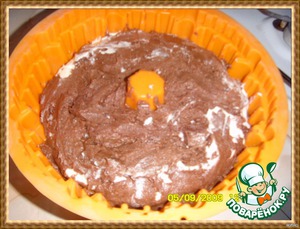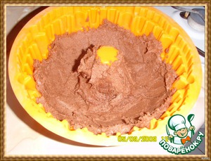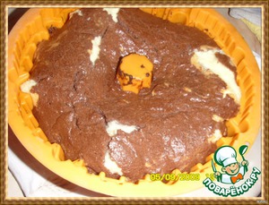 Для приготовления нам понадобится форма в виде кольца диаметром примерно 20 см. Лучше взять побольше и повыше, для перестраховки, чтобы не вывалился пирог, И хорошо испечся кексу. Выкладываем (распределяем) тесто в форму, стараясь, чтобы тесто "выходило" за края формы (чтобы осталось для закрытия верха-крема).