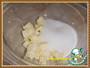 В размягченное сливочное масло добавить сахарный песок, перемешать. -