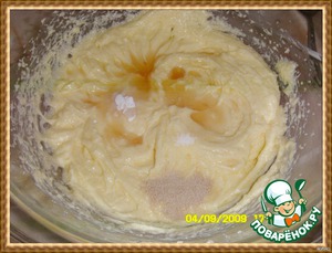 Добавить соль, дрожжи, ром (коньяк), ваниль.
