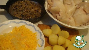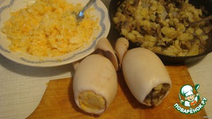 У меня 3 кальмара с сыром+картофель и 3 - с грибами+картофель. -