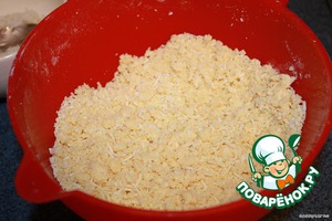 Смешать все сухие составные базы, перетереть с мягким маслом до состояния "крошек".