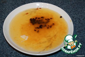 Маракуйя, она же пассифлора, обладает очень сочной ароматной мякотью, практически, соком с зернышками. Семечки не надо отцеживать.