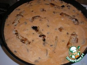 5. Добавляем грибную смесь, минут пять обжариваем.