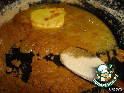 Потом добавить этот сироп в масляно-мучную смесь. И опять тщательно перемешать. -