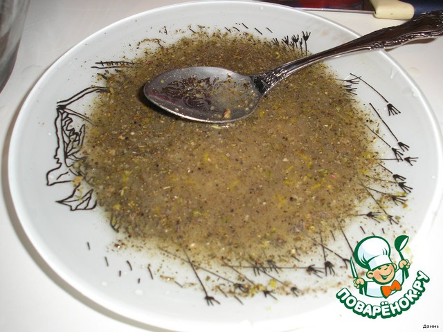 Готовим маринад: с соком половины лимона смешиваем соль, лимонный перец, смесь итальянских трав.