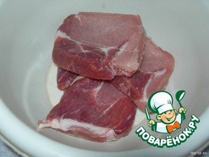 • Порезать мясо на куски - не тонко. (У меня были постные куски, но лучше брать все же пожирнее, чтоб получились помягче).