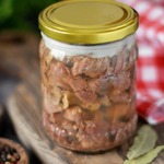 [+5]Я готовила из домашней козлятины, точнее из обрезков разных, которые набрались после разделки туши. Такие обрезочки сложно пристроить в какое-то блюдо, они неказистые и довольно жилистые. А вот сделать из них тушенку, самое то!