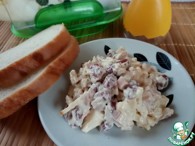 Рецепт «Салат с фасолью и копченой курицей»: