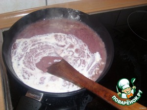 Дальше быстренько доливаем водичку, в которой варили фасоль. Размешиваем, чтобы не было комочков.