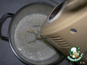 И порциями всыпать сахарную пудру. Получится вот такое густое светло-желтое тесто.