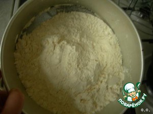 Смешиваем, всыпаем разрыхлитель и добавляем оставшиеся молоко и муку.