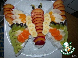Вот и все. Бабочка застыла, мы украшаем ее фруктами и покрываем слоем желе.