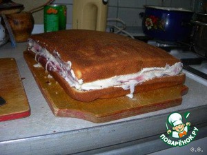 Тем временем бисквит готов. У меня он сверху плохо пропекся, поэтому я просто перевернула его и допекла еще минут 10 =). Получилось вот что.