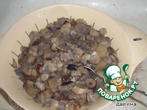 Как грибы сварятся, откинуть на дуршлаг, чтобы стекла жидкость.