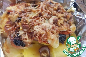 Под самый конец выпекания рекомендуется слить воду с противня и включить минут на 5 (не больше) гриль - для получения золотистой хрустящей корочки.