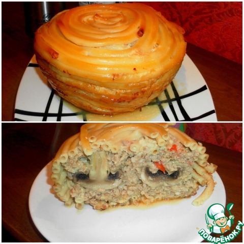 Рецепт «Тимбаль мясной с шампиньонами»: