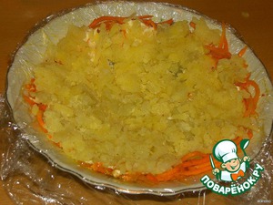 Потом смазываем майонезом и кладем оставшийся натертый картофель.