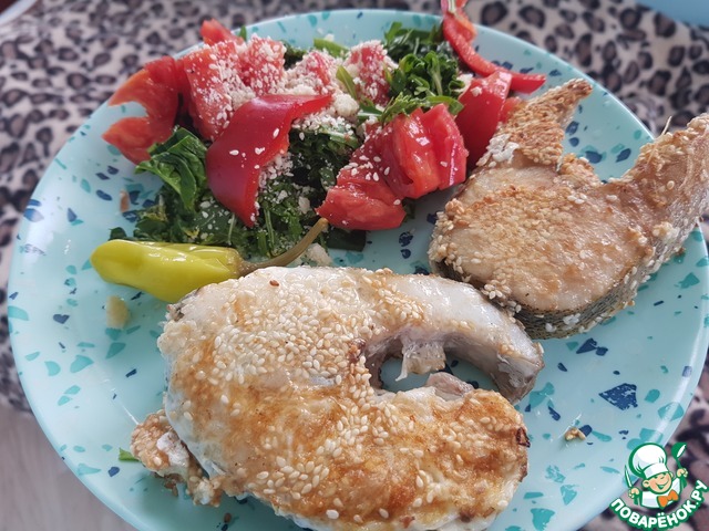 Я люблю рыбу в любом приготовлении. Семена кунжута придают рыбе хороший вкус. Жаренная рыбка хорошо идет с салатом из овощей. За фото к рецепту спасибо Юлии yuvl.