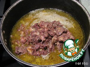 Благополучно присоединить к этой вкусно пахнущей субстанции мяско и перемешать