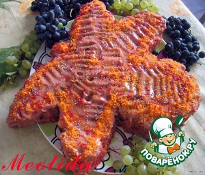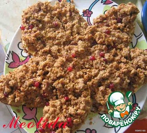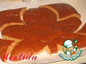 Противень застилаем бумагой для выпекания, смазываем маслом, выкладываем тесто и готовим в разогретой до 200С духовке минут 35 ("до сухой спички")