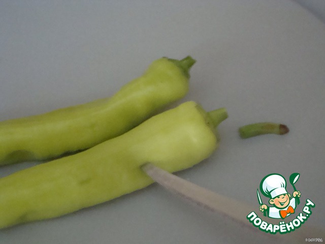 У перчика отрезать длинные плодоножки. Сделать проколы в нескольких местах.