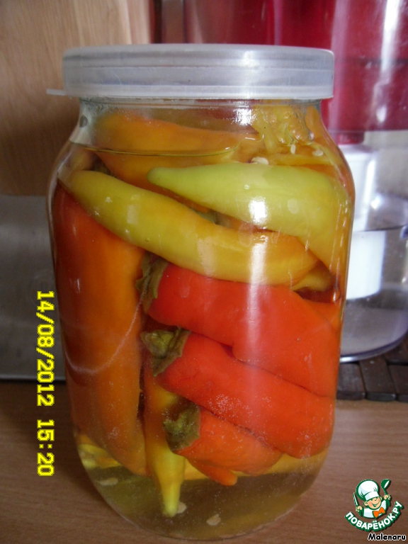 Время консервации овощей. Набрала всего понемногу, в том числе, и горького перца. А получилось, что вроде все переделала, а перчик остался. Хотя у меня муж и любит в прикуску заедать им, но не в таком количестве, что у меня осталось. Вот и встал вопрос: - Что с ним делать? Решила замариновать, пусть зимой тоже кушает свой горький, но уже маринованный перчик. Может кто-то тоже столкнулся с такой дилеммой, тогда берите на вооружение этот рецепт...