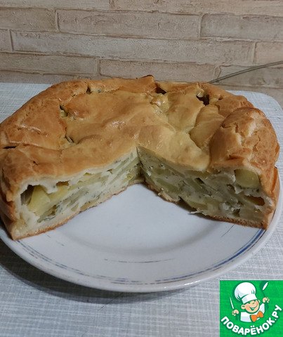 Рецепт довольно старенький и простой. Вариаций на тему такого пирога я встречала немало. Пирог, что называется, на скорую руку, когда нет времени долго колдовать над тестом. Кроме того, начинка для этого несладкого пирога может быть любая - картофель, капуста, мясной фарш, рыба и дальше, как фантазия подскажет. Сегодня у меня с картошкой и луком... аромат гуляет по квартире - словами не передать!