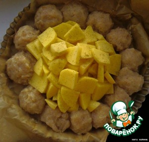 Ингредиенты для «Запеченные тефтели с картофелем»: