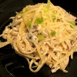 "Золотую" муку постепенно разбавить сливками - мы получили соус. Этим соусом залить наши спагетти и тушить 1 минутку.