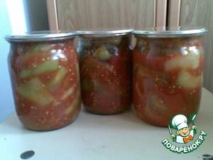 Разложить в стерилизованные банки, закатать. И можно ставить в кладовочку :). Из этого количества овощей получается 8 пол-литровых баночек. Приятного аппетита :).