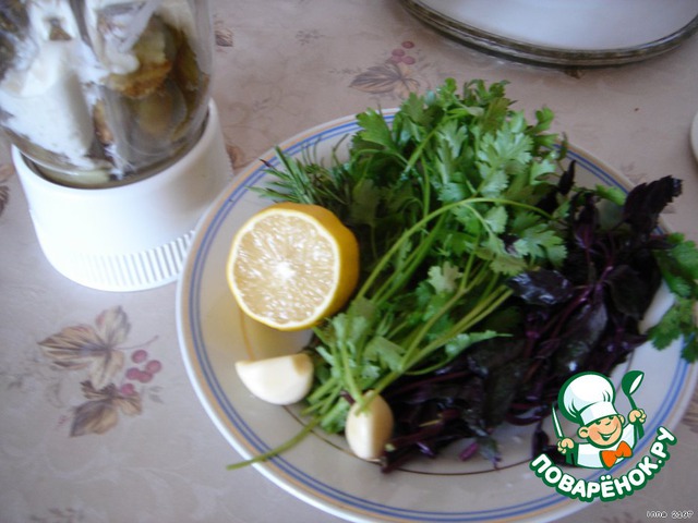 - Масло оливковое (Базилик, кинза , петрушка , соль - по вкусу) — 2 ст. л.