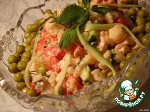 Рецепт салата нашла в интернете. Салат получился легким и вкусным. Готовить быстро, пробуйте.