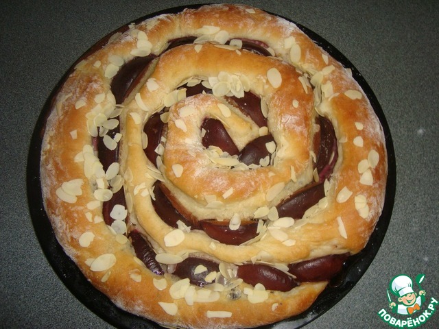 Половинки слив вставляем между слоями "улитки", а по краю пирога "вжимаем" в тесто.
