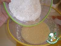 Муку смешать с быстрорастворимыми дрожжами. И отставить в сторону. (У кого простые дрожжи, то разводим дрожжи в небольшом количестве теплого молока + чуть сахара и даем немного подойти.) |