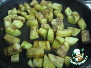 В этой же сковороде обжариваем баклажаны около 5-7 минут и тоже снимаем с огня.