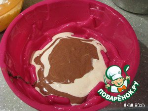 В форму выкладывать ложкой попеременно из обеих емкостей. пока все тесто не закончится.