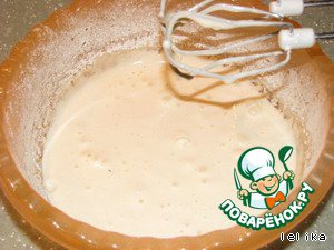 Яйца взбить с сахаром до полного его растворения, добавить соль, соду и муку. Все тщательно смешать.