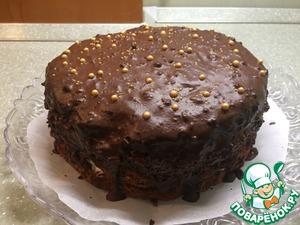 Готовим глазурь: в емкость вливаем молоко, добавляем сливочное масло, когда масло растопится, туда же отправляем какао, все тщательно перемешиваем, если густо - добавьте молока, если жидко - еще какао. Получившейся глазурью поливаем сверху наше "произведение". Вот и все.