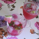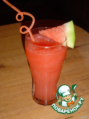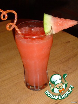 Арбуз очищаем от кожицы и семечек, нарезаем кусочками и помещаем в шейкер.