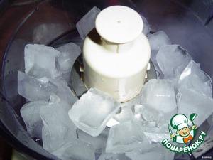 Взбиваем вместе с уже измельченным льдом, добавив щепотку сахарной пудры.