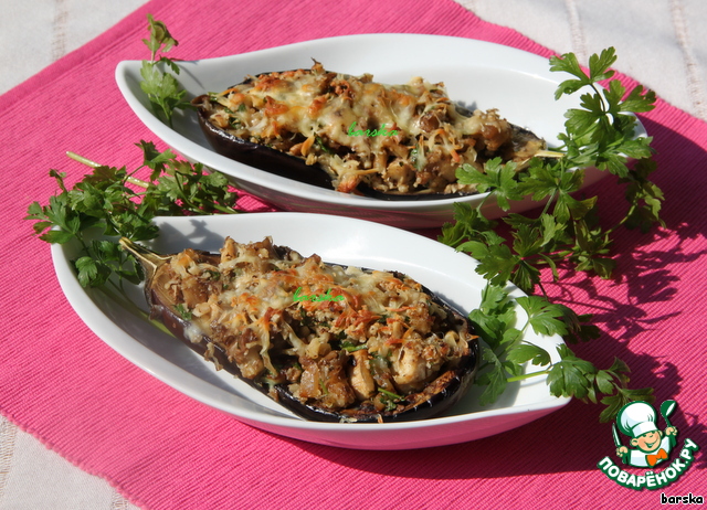 Ингредиенты для «Баклажаны с мясной начинкой»: