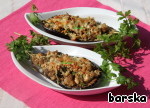 6 Баклажаны немного остыли ложкой вынимаем серединку, и смешиваем с мясом, добавляем