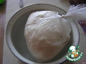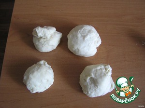 Стол, скалку и руки смажем подсолнечным маслом. Вытаскиваем тесто и формируем шарики.
