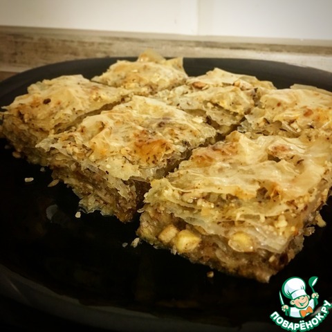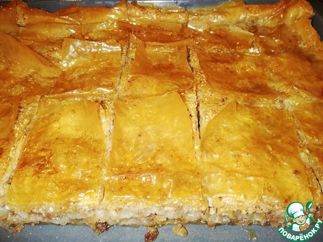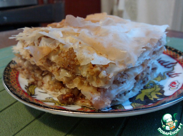 Тесто "фило" можно использовать готовое, а можно приготовить самим. На сайте много хороших рецептов этого теста, поэтому задерживаться на этом не буду.